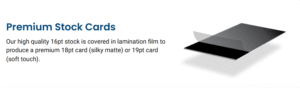 - Choose from soft touch (19pt) or matte lamination (18pt)